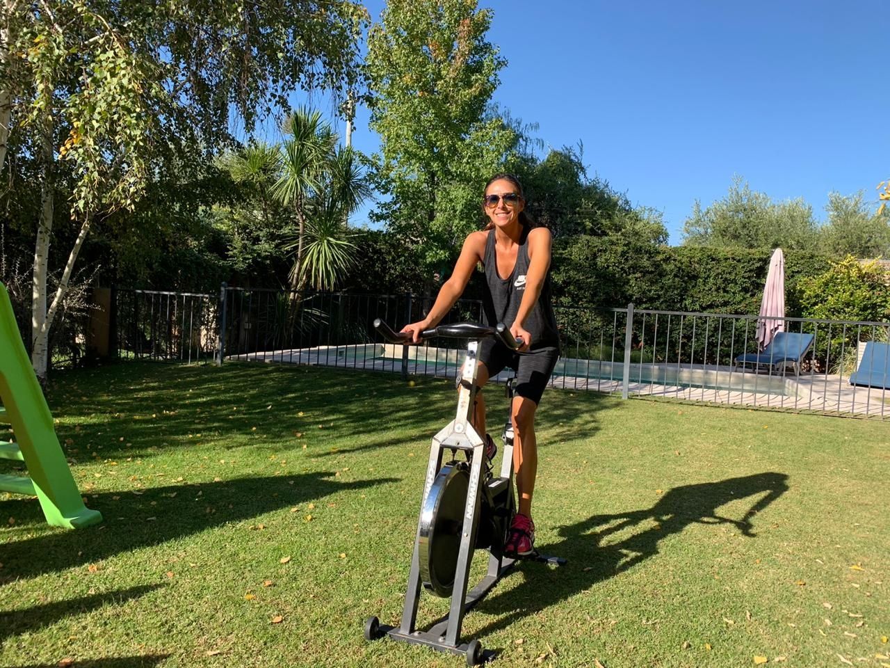 Emiliana Bobillo es otra de las mendocinas que entrena muy fuerte en casa. ¡Entre la bici y el boxeo, no para!