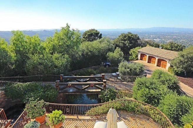 La villa también tiene una cabaña de piedra adecuada para bodega y sala de degustación, así como piscina, spa estilo laguna, fuentes, caminos de piedra, un puente, jardines, un patio enrejado, un garaje para tres coches, dos pequeños estudios y un amplio espacio de terraza pavimentada.