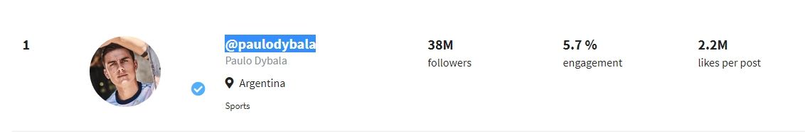 El cordobés que se desempeña como delantero o centrocampista en la Juventus F. C. de la Serie A de Italia, tiene más de 38 millones de seguidores y su noviazgo con la joven Oriana Sabatini lo ha posicionado aún más entre los jóvenes argentinos.