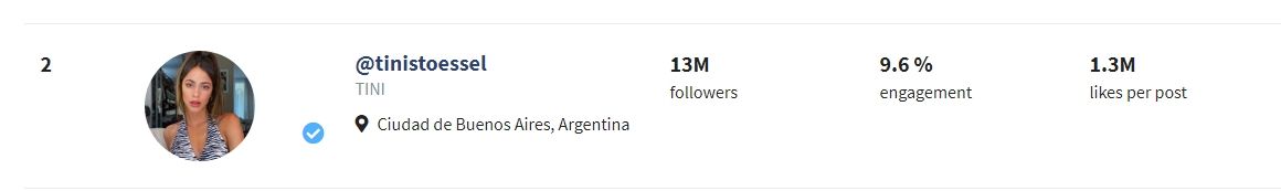 La actriz, cantante y modelo argentina. Comenzó a hacerse conocida por su personaje de Violetta Castillo en la serie original de Disney Channel Latinoamérica, Violetta, pero hoy es una estrella internacional. De hecho, su romance con Sebastián Yatra la hizo liderar las playlist de Spotify. La cantante de Fresa tiene más de 13 millones de seguidores en su cuenta de Instagram