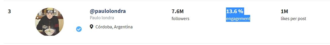 El cantante cordobés de reguetón, trap latino y latin pop ha trascendido las fronteras con su estilo. Paulo tiene más de 7 millones de seguidores y 13.6 % de engagement.