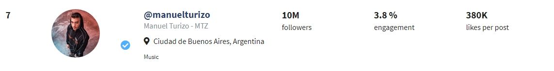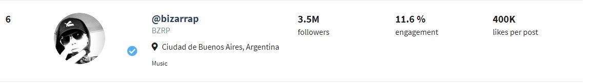 El cantante de rap argentino supera los 3 millones de seguidores.