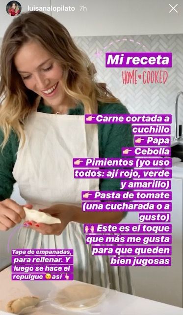 Luisana Lopilato no deja su argentinidad, por más que esté pasando estos días obligatorios de cuidado personal y familiar quedándose en confinamiento en su hogar de Canadá junto a Michael Bublé y sus tres hijos. De hecho, utilizó su cuenta de Instagram para dejar una historia en la que se muestra preparando deliciosas empanadas para deleitar a su familia con un plato típicamente argentino.