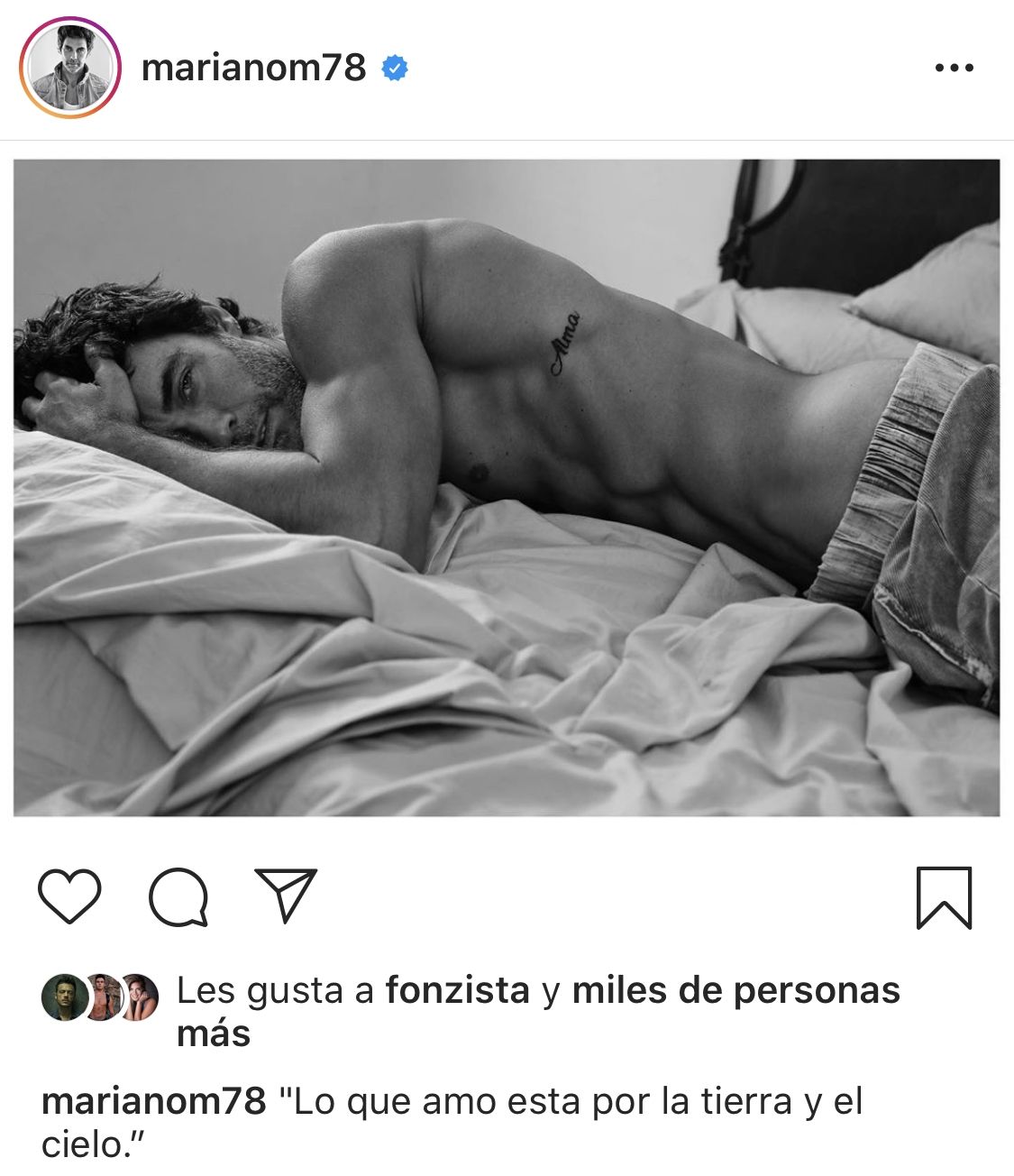 Ya antes Mariano había confiado una cierta predilección por las imágenes en blanco y negro: “Si fotografías a una persona en blanco y negro fotografías su Alma..”, escribió el actor junto a la imagen tomada por el fotógrafo Martin Traynor.