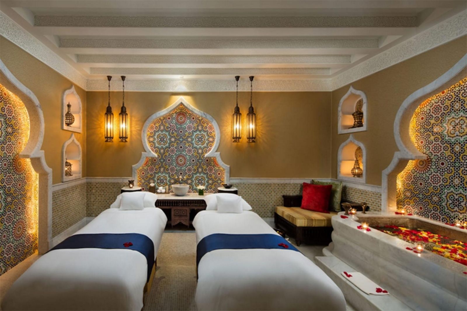 El Borbón se alojaría estos días en una suite presidencial, cuyo precio podría rondar los once mil euros por noche, según informa 'ABC'. Este tipo de habitación, reservada para los huéspedes más importantes, tiene un tamaño de 280 metros cuadrados, con una amplia terraza con vistas al mar. El estilo de la estancia, al igual que del resto del hotel, combina las decoraciones geométricas de tradición árabe con materiales dorados, incrustaciones en mármol y mosaicos de color plata, oro y cristal.