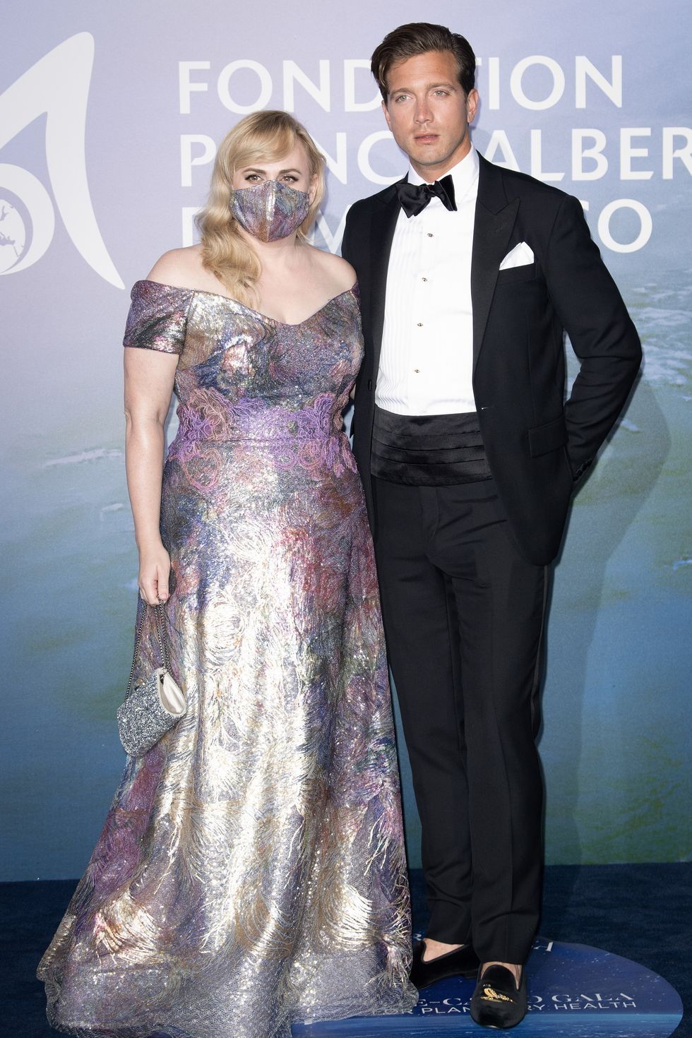 Rebel Wilson. La comediante pidió que le hagan una mascarilla con la misma tela estampada de su vestidode Rene Ruiz Collection by Luis Escudero.
