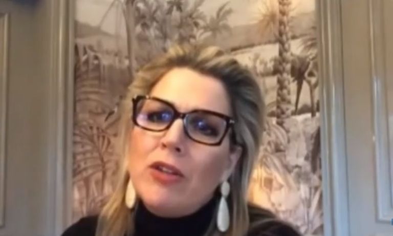 Ella apareció en una videoconferencia, ya que presidió una videollamada de la organización MIND, la cual se enfoca en las enfermedades mentales. Con unas imponentes gafas, que ya utilizó en alguna que otra ocasión. En la misma, también demostró que maneja a la perfección el neerlandés.