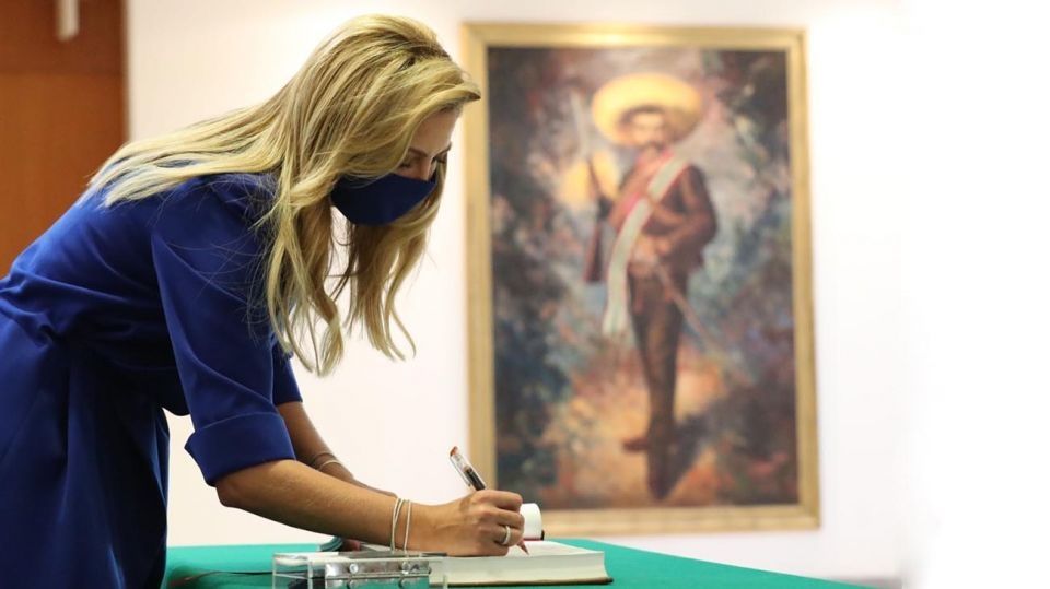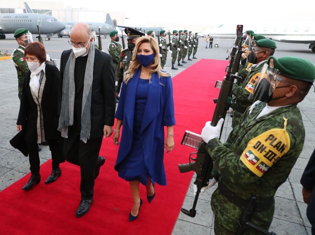 Alberto Fernández llegó a México invitado por el presidente Andrés Manuel López Obrador, a propósito de la conmemoración de los 200 años de la independencia de ese país. Fabiola Yáñez acompañó al presidente y, apenas bajó del avión, se llevó la atención de cronistas y fotógrafos con su look azul eléctrico monocromático.