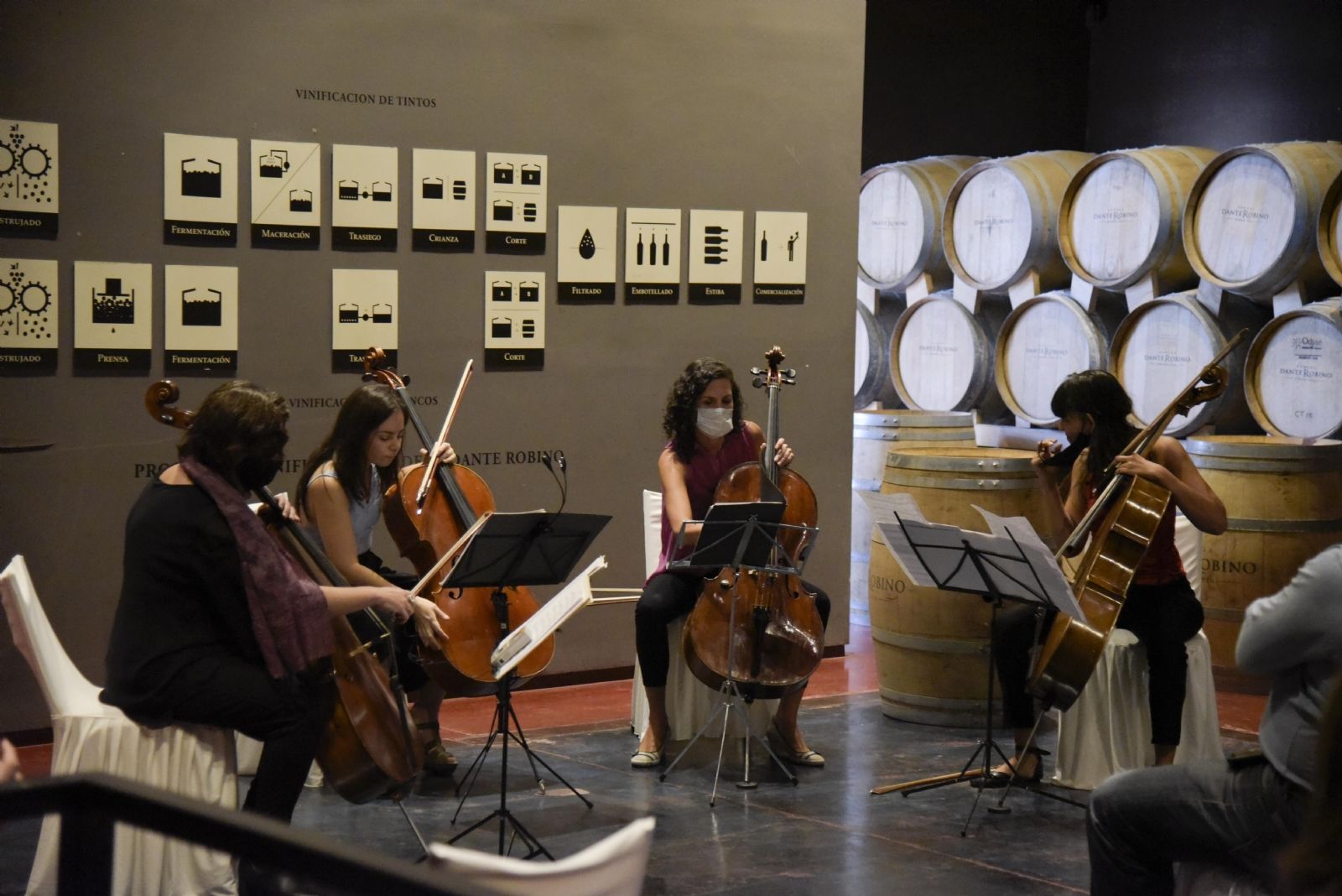 El evento se llevó a cabo en la Nave de Toneles de la bodega, con entrada gratuita y siguiendo todos los protocolos sanitarios. Más de 60 personas disfrutaron del concierto a cargo del Cuarteto Trébol de violoncellos, formado por Noelia Pavez, Lilian Giubetich, Gabriela Guembe y Laura Bengolea, quienes eligieron un repertorio de compositores ligados musical y emocionalmente al bandoneonista argentino, entre ellos Heitor Villa-Lobos (Preludio de la Bachiana Brasileira nro.4), Marcelo Reinoso (Galdr), Leopoldo Martí (La misma luz), para termina interpretando Responso, del gran Anibal Troilo.
