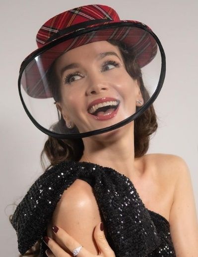 La encargada del espléndido estilismo de Oreiro es la diseñadora Florencia Tellado, quien desde el 2009 se dedica exclusivamente a la sombrerería y que encontró en la situación de la pandemia una forma genuina de entrelazar protección y moda.