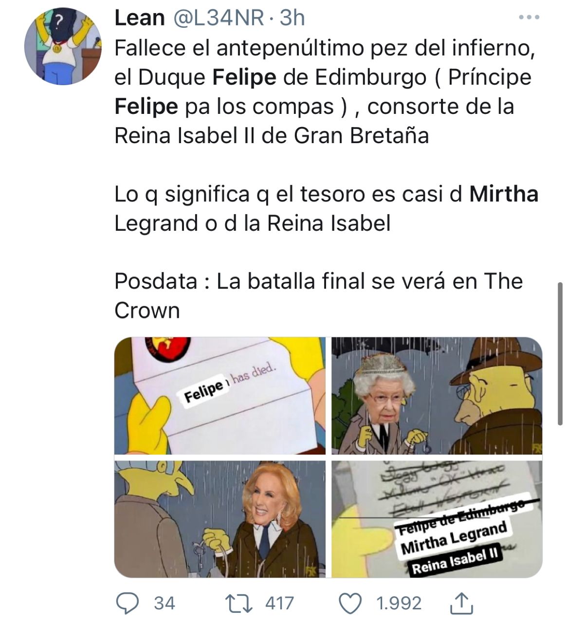 La muerte del príncipe Felipe de Edimburgo, esposo de la Reina Isabell II de Inglaterra, falleció hace pocas horas a los 99 años, y la noticia se hizo viral, recorriendo las redes sociales y los portales de internet en tiempo récord.