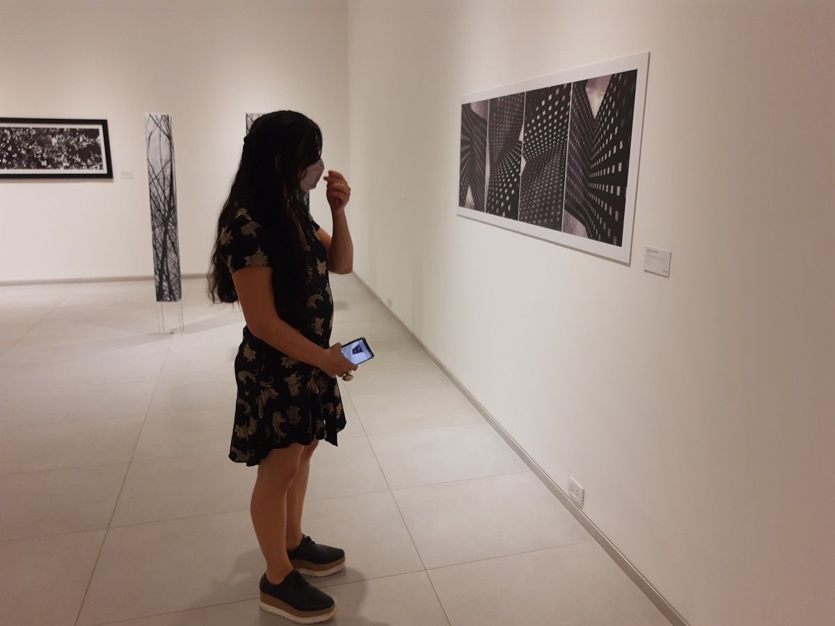 Gabriela Nafissi, cocnentrada disfrutando de la muestra.