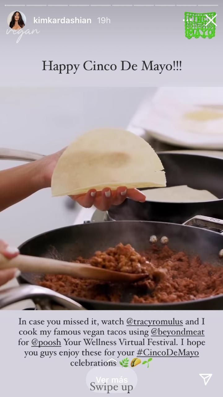 “Happy Cinco de Mayo!” publicó Kim en su cuenta de Instagram, e invitó a todos los que no pudieron verla cocinando junto a su amiga Tracy Romulus a acceder al tutorial publicado en la cuenta de YouTube de Poosh.