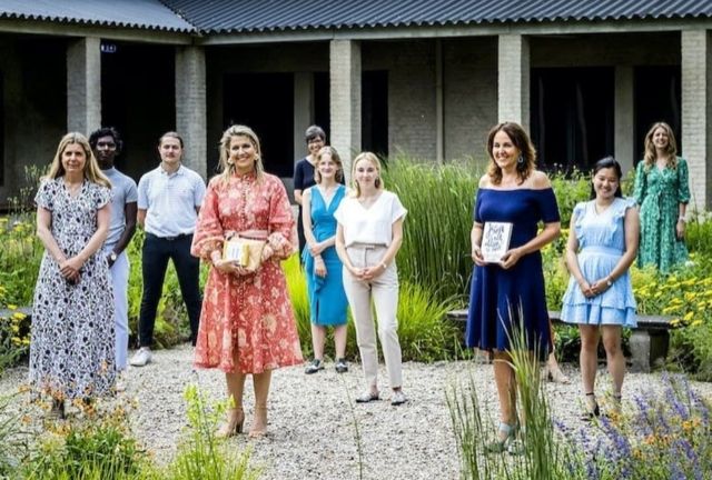 La reina Máxima realizó una visita de trabajo a la gente que trabaja en el programa de amigos de Villa Pinedo. Se trata de una fundación que fue la ganadora de uno de los tres Appeltjes van Oranje 2020 del Oranje Fonds.