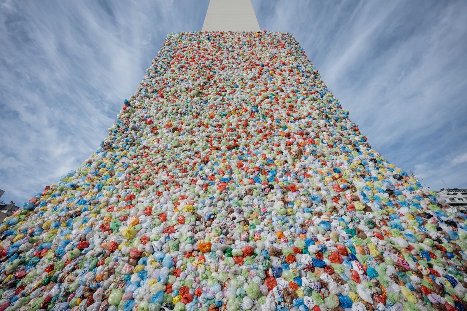 “Todo este plástico que cubre al Obelisco representa los reciclables que recolectamos por minuto en la Ciudad”