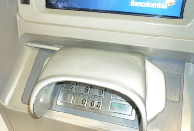 Aquí, te mostramos una curiosidad: cómo combaten el acceso a las claves personales en Colombia. Como verás en la foto de abajo, le colocan una cubierta al teclado que impide que las cámaras de seguridad del propio cajero registren el movimiento de los dedos al teclear la contraseña, pero también el acceso de curiosos.