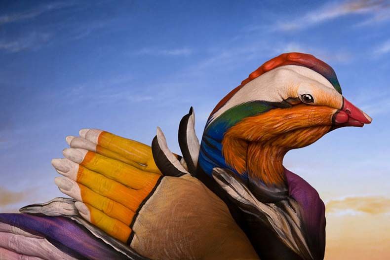 El artista italiano Guido Daniele, y desde hace más de veinte años experimenta con pintura sobre la piel, y los resultados, a qué dudarlo, son asombrosos.