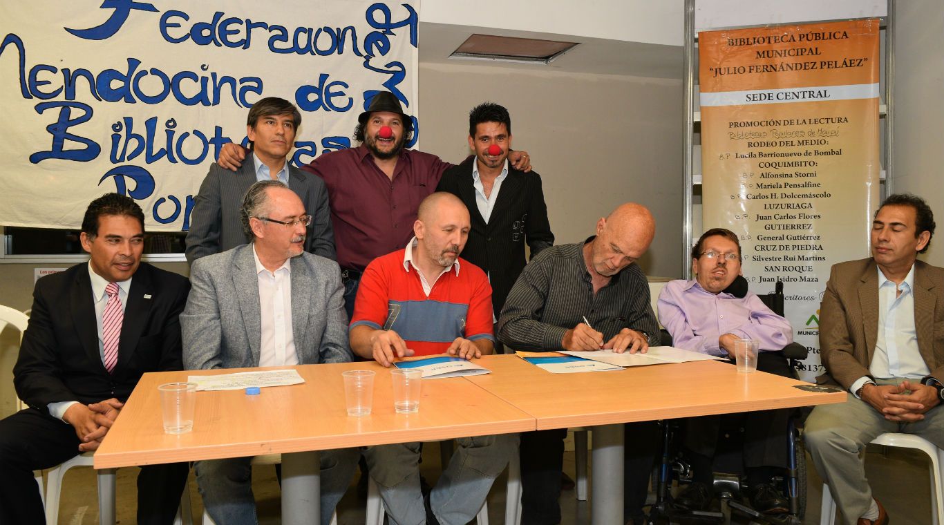 Además de por los integrantes de Emergencia de Sonrisas, el convenio fue firmado por Alberto Recabarren, director de la OSEP; Joaquín Arabel, director del Hospital Pediátrico Fleming; Ernesto Arroyave, de la Federación Mendocina de Bibliotecas Populares, y Omar Sánchez, de la Asociación Hagamos Algo por los chicos con Leucemia.