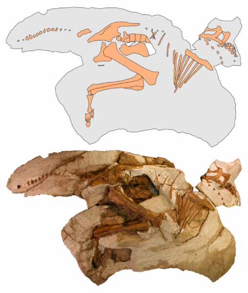Increíblemente, el espécimen había sido ignorado por dos paleontólogos profesionales que caminaban a varios metros de profundidad cerca de los huesos días antes del descubrimiento. “Al principio estaba interesado en ver lo que era la pieza inicial de hueso que sobresalía de la roca“, comentó Terris. “Cuando expusimos el cráneo, yo estaba muy emocionado“, expresaba el joven. Tras la excavación y posterior limpieza del fósil, se reveló casi todo el esqueleto de un bebé dinosaurio que medía sólo dos metros de largo cuando murió.