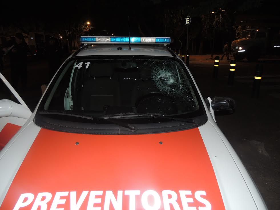A pesar de que el intento de agresión a los jugadores no pasó a mayores, los hinchas sí se enfrentaron con la policía y preventores que pretendía mediar ante la situación. Pero esos hinchas se violentaron y fueron con todo contra los agentes tirando piedras y destrozando los autos de vigilancia.