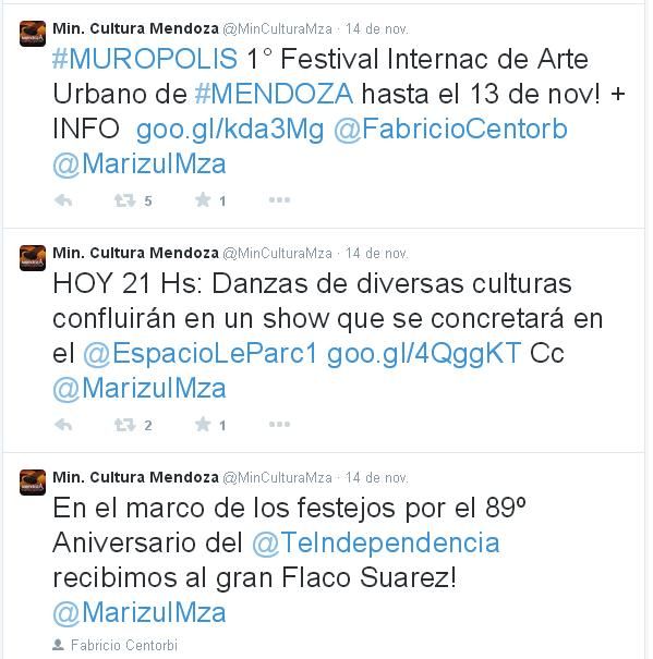 En medio de los tuits anteriores estaba el que acusaba a MDZ Online de estar realizando una operación política por la pauta publicitaria a partir de los artículos que daban cuenta de las presiones que vivieron los escritores Angélica Gorodischer y Guillermo Saccomanno y la extorsión a la que fueron sometidos de parte de Vanesa Funes, directora del Ediciones Culturales de Mendoza.