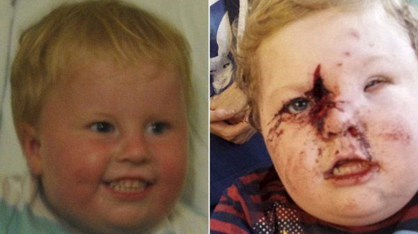 Ollie Cummings, de dos años de edad, sufrió lesiones faciales graves al ser atacado por la mascota de la familia mientras jugaba en la cocina de la casa del novio de su mamá. Ollie estaba de pie junto al perro cuando de repente este se dio la vuelta y comenzó a morderle la cabeza, según contó la propia madre del chico, Natasha Wilson , de 25 años, quien dice que tuvo que arrancar a su hijo de los dientes del perro.