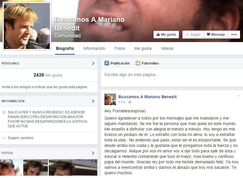 "Ya nos reencontraremos arriba para darnos el abrazo que hoy nos sacaron". Las palabras son de Any Fornieles, esposa de Mariano Benedit, asesor financiero que el miércoles pasado fue hallado muerto de un tiro en la cabeza en un descampado en la Costanera Sur, en la Ciudad de Buenos Aires.