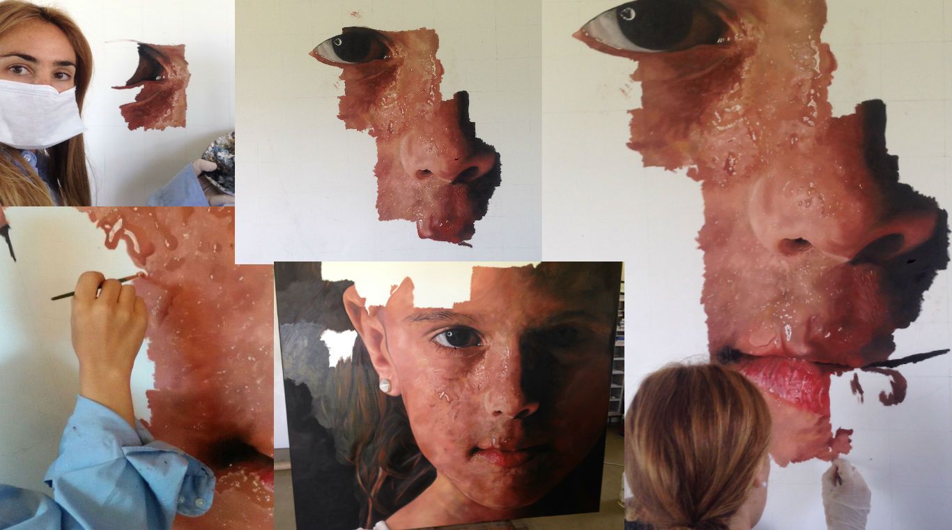 Por supuesto, el detalle del trabajo de Aise mueve a preguntas que tienen que ver con la forma en la que trabaja. Pero no somos los únicos que la interrogamos sobre esto. “La gente preguntaba si no había trabajado sobre una foto impresa o sobre un dibujo previo, así que lo que hicimos fue mostrar imágenes del proceso, para que vieran que no había un dibujo previo, sino que trabajo sobre el lienzo directamente”, nos dice.