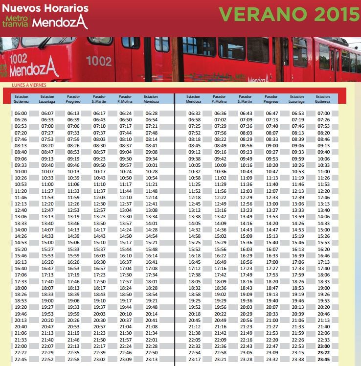 Como ocurre cada año durante la época de verano y desde que el Metrotranvía comenzó a circular por las calle de Mendoza, se modificarán los horarios de frecuencias.