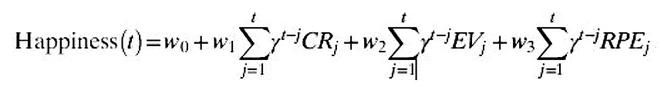 Con estos datos se construyó un modelo computacional y una fórmula en la que la felicidad que uno mismo valora en un momento determinado se puede predecir en función de las últimas recompensas recibidas y expectativas experimentadas.