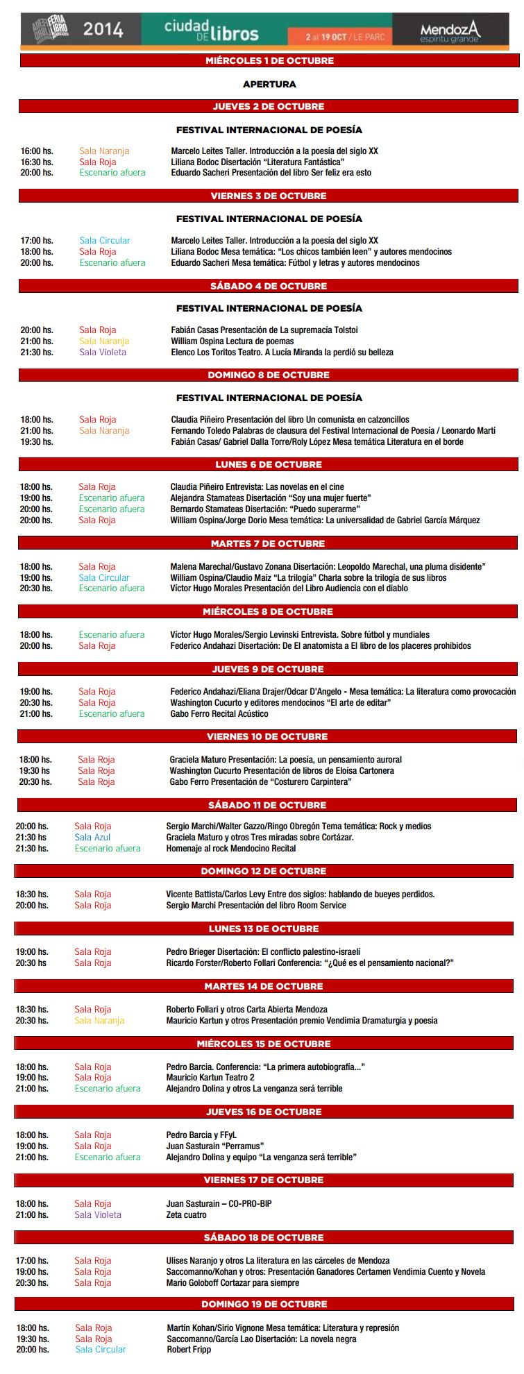 En síntesis: la Feria del Libro de Mendoza 2014 contará con visitas de lujo, con espectáculos mendocinos de altísimo nivel y con una programación destinada a todos los públicos y a todas las franjas etarias.