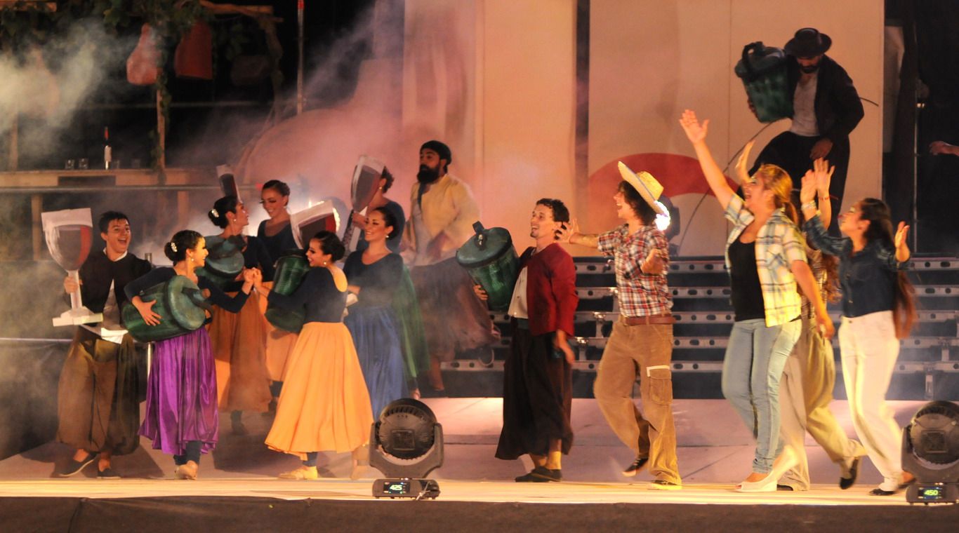 Luego, comenzó el espectáculo con unos 150 artistas en escena, un despliegue impactante de luces y efectos varios que disfrutaron miles de sanmartinianos. Hubo espacios para la destacada boxeadora Yésica Marcos; el padre de la patria, José de San Martín; la patrona de los viñedos, la Virgen de la Carrodilla; e, incluso, para hacer mención al "pogo más grande del mundo", aludiendo a los últimos recitales del Indio Solari realizados en el mismo Parque Agnesi.
