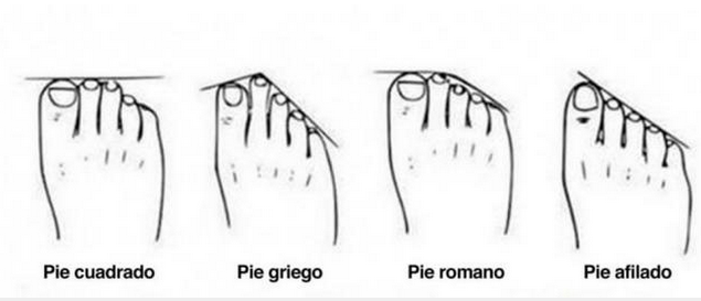 Se caracteriza porque la mayoría de los dedos tienen el mismo largo y la forma del pie es similar a un rectángulo. Personas más analíticas, que examinan cada detalle de un problema antes de tomar una decisión. Sus principios son más bien sólidos y son menos impulsivos. Prácticos, fiables y seguras de si misma.
