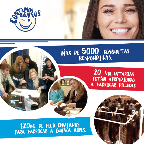 - Pelucas recibidas hasta el momento desde Buenos Aires.: 12 pelucas con pelo natural donado.