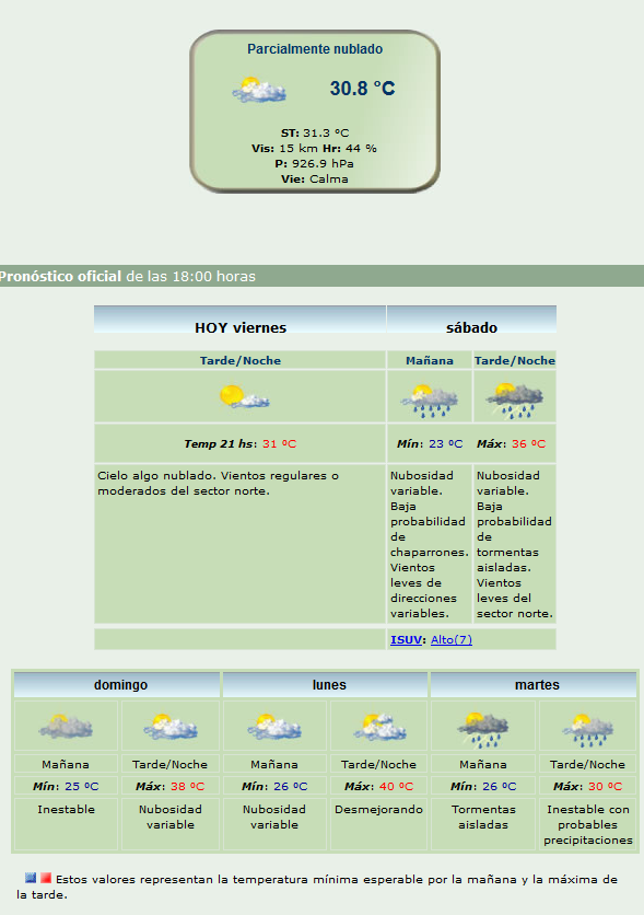 Un informe especial del Servicio Meteorológico Nacional alertó hoy sobre una ola de calor para los próximos días en los que la temperatura mínima en el centro y norte del país y al este de Río Negro oscilará entre los 22 y los 26 grados, y la máxima irá entre los 35 y los 40 grados.