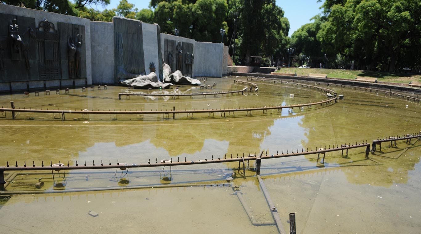 Mugre en la principal fuente de Mendoza