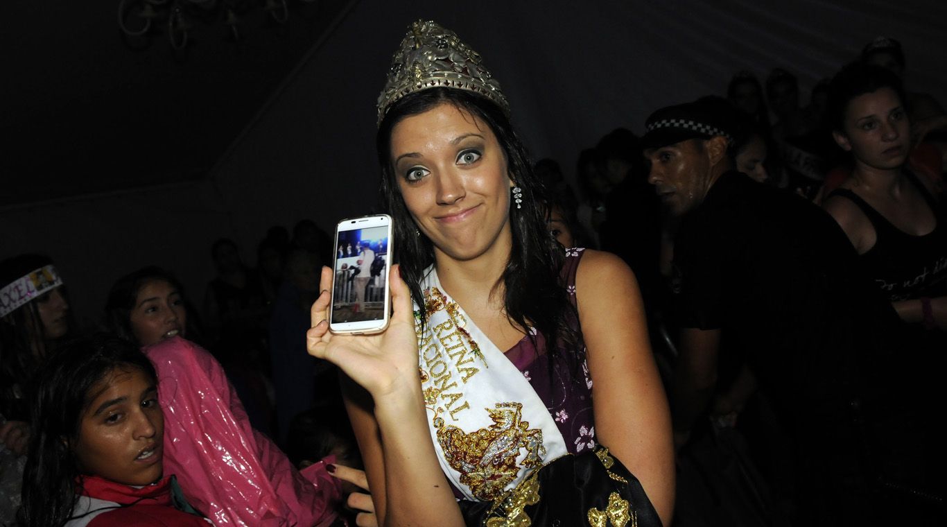 La Reina Nacional de la Vendimia, Sofía Haudet, poniendo simpatía en medio de la hecatombe.