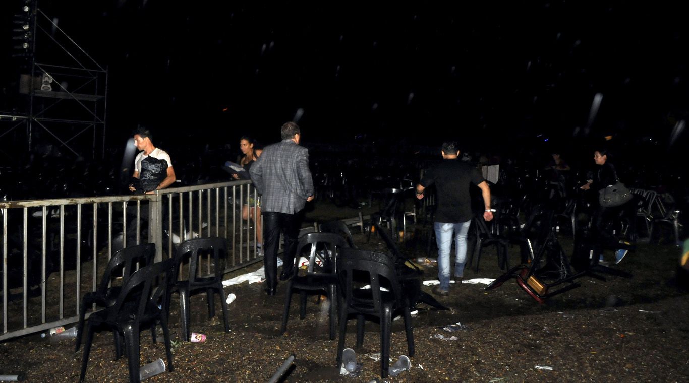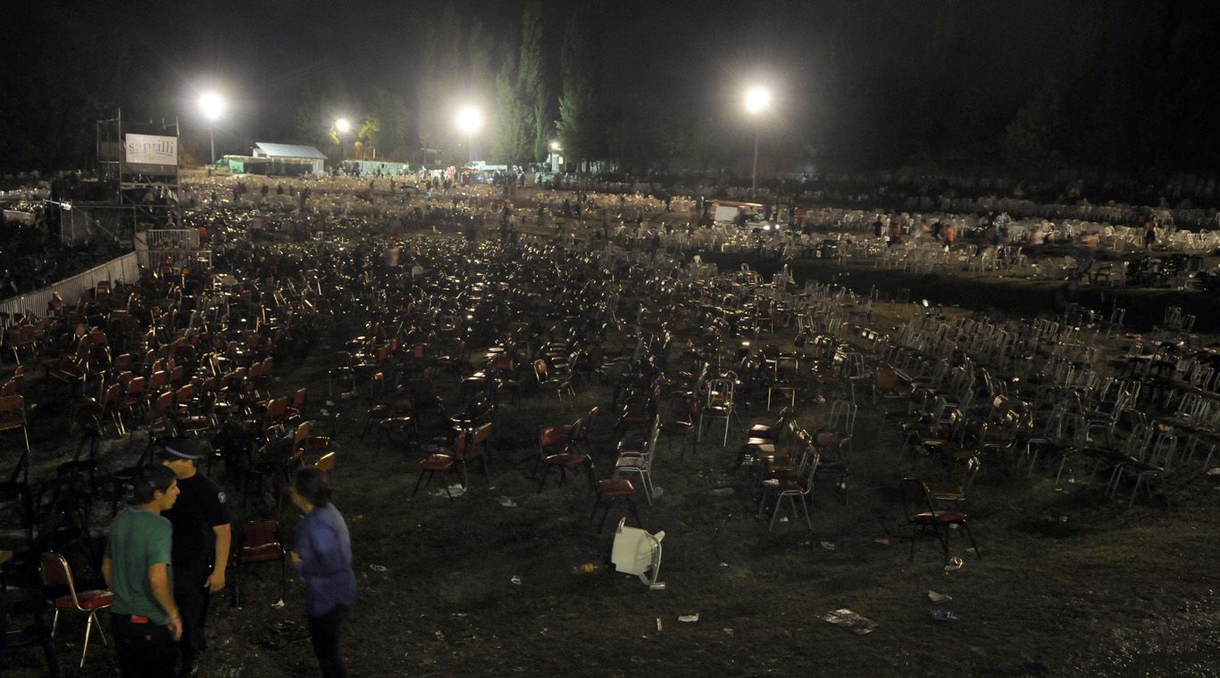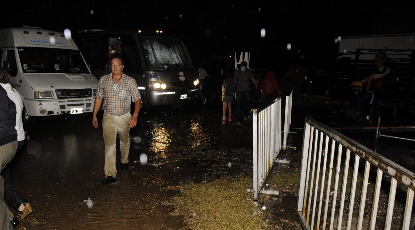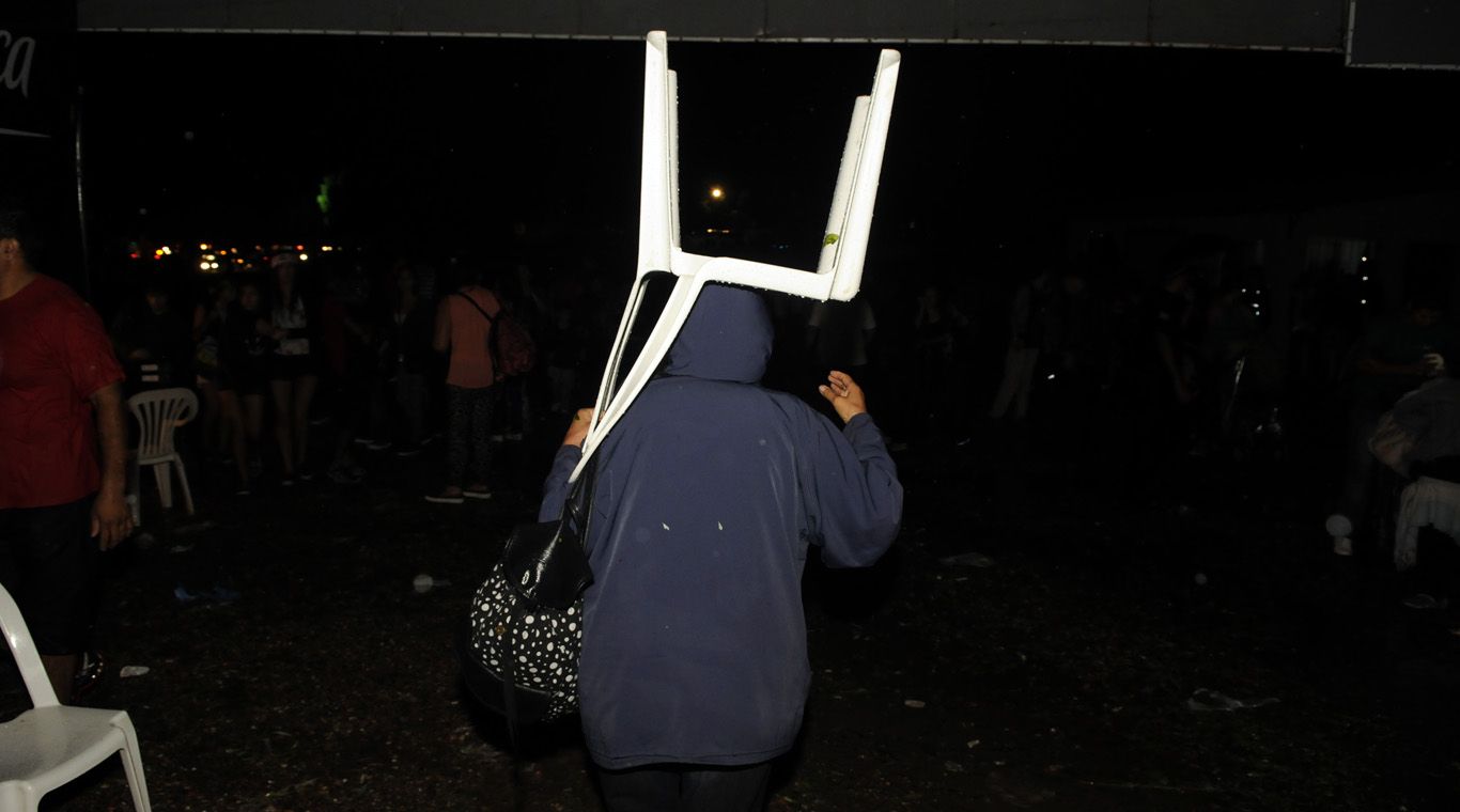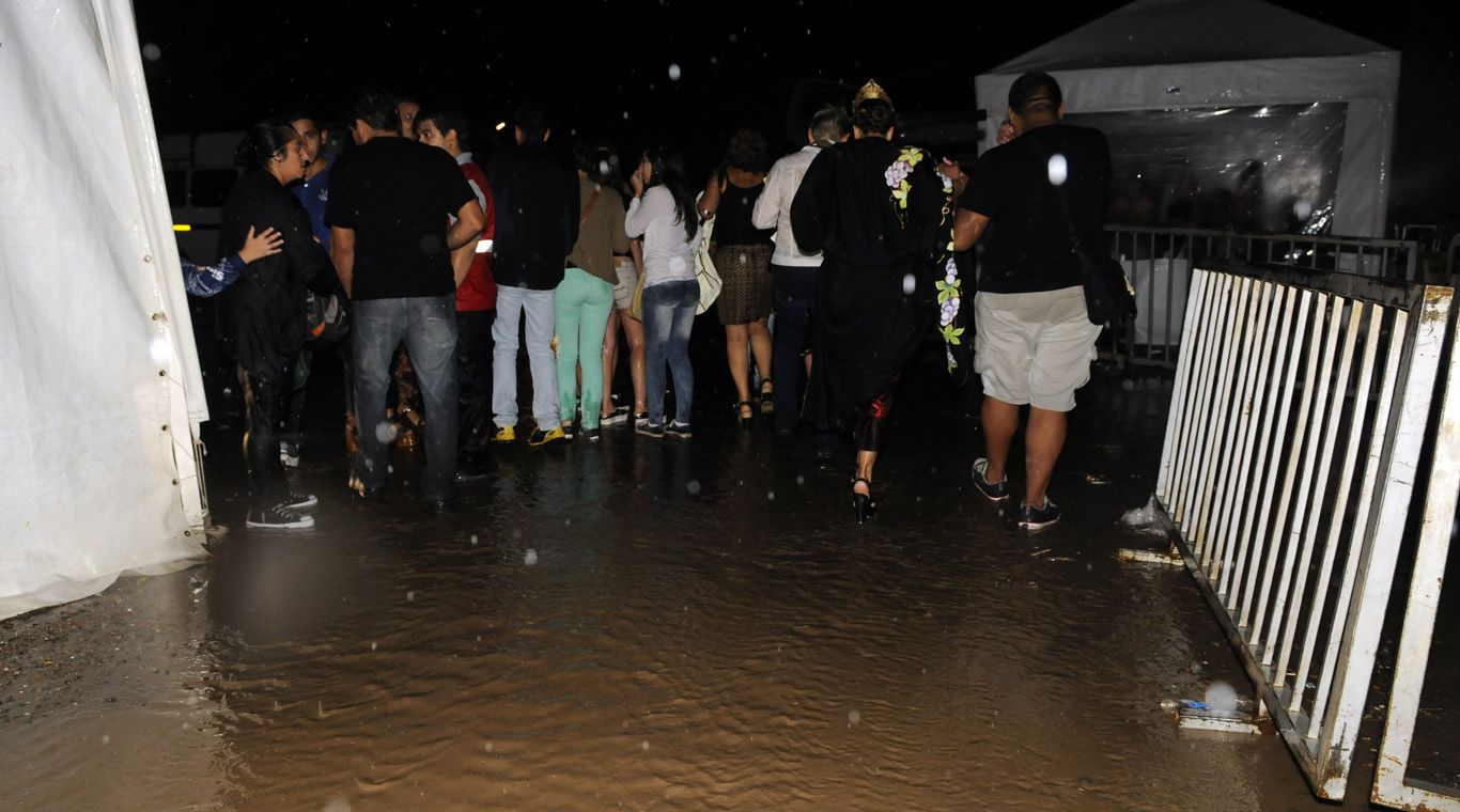 Decenas de sillas apiladas en el ingreso al predio se acumularon tras la tormenta. Muchas fueron utilizadas para evitar lastimaduras por el granizo. Si bien no fue caótica, la salida del Anfiteatro se caracterizó por el apuro y la improvisación. Los automóviles debían circular a bajísima velocidad para no atropellar a los peatones. El tránsito estaba cortado a la altura del hospital Scaravelli para quienes ingresaban desde la avenida San Martín. La inundación se extendió a las calles aledañas al Anfiteatro y otros predios cercanos. Muchos se mojaron los pies para poder cruzar las esquinas.
