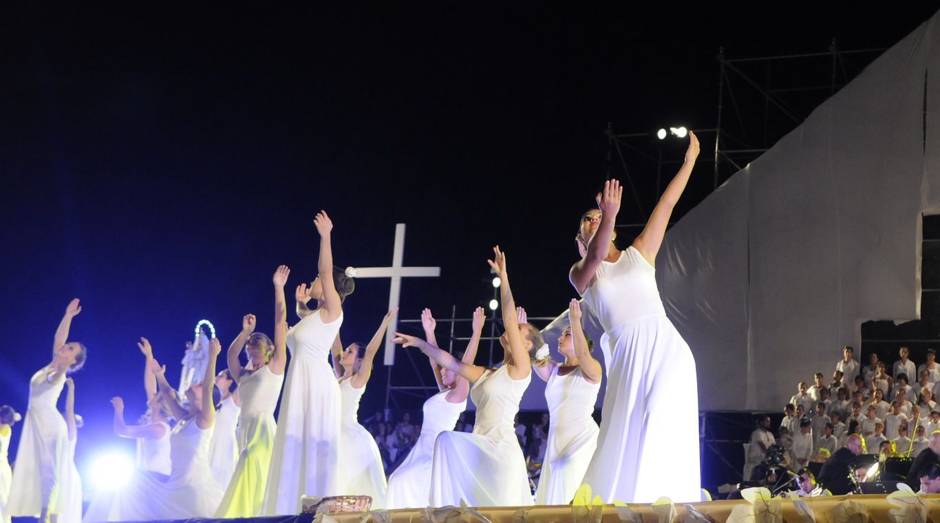El espectáculo contó un ballet de 70 bailarines dirigido por Cristina Castro. 400 voces: 120 niños, 5 solistas -dentro de ellos, tres mujeres-.
