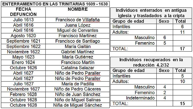 El dato clave que relaciona estos fragmentos con los de Cervantes, enterrado en 1616, es que la documentación histórica señala que sus restos y los de su mujer fueron transportados a principios del siglo XVIII desde el antiguo al nuevo convento de las Trinitarias.