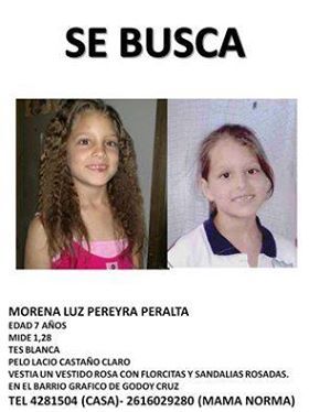 Morena desapareció el sábado a la tarde. La pequeña salió a comprar a un kiosco ubicado a la vuelta de su casa (calle Talcahuano del barrio Gráfico de Godoy Cruz) y no volvieron a verla.