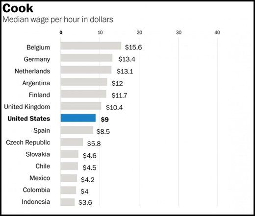 Los chefs argentinos ocupan el cuarto puesto del ránking de salarios en el mundo con 12 dólares por hora. Si trabajaran en Bélgica recibirían US$15,6 mientras que si se fueran a trabajar a Indonesia, ese ingreso caería a US$3,6.