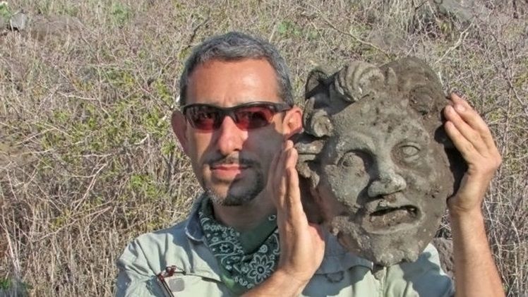 Una máscara de bronce de Pan, un dios griego mitad humano mitad cabra, fue encontrada por casualidad en el sitio arqueológico Susita, en los Altos del Golán, Israel.