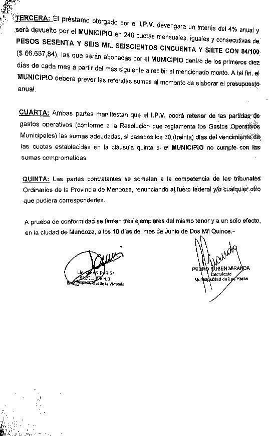 El presidente del IPV, Omar Parisi, indicó a MDZ, que los fondos están disponibles, provienen de la provincia, por lo que el instituto espera la autorización del Concejo Deliberante de Las Heras para hacer la entrega.