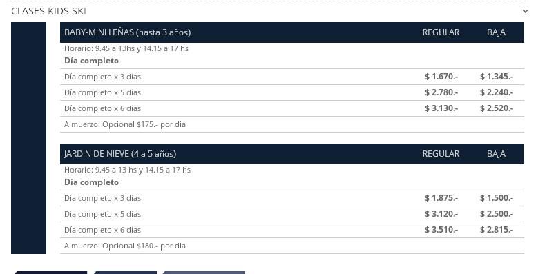 Si no sabés esquiar, es importante que pidas ayuda. Para eso, existe la Escuela de Esquí. Estos son los precios: