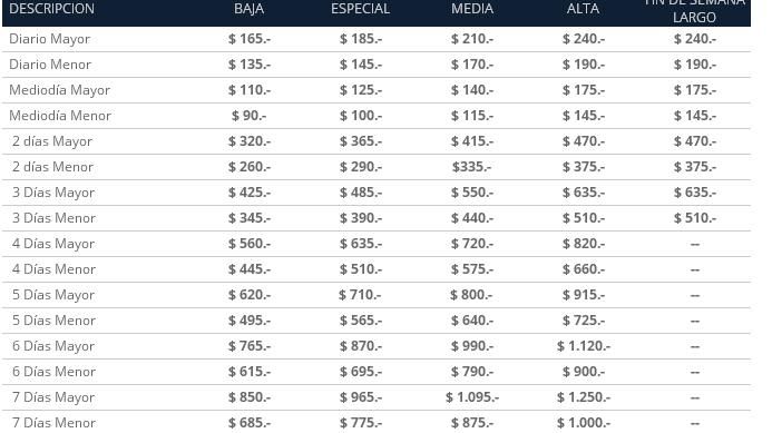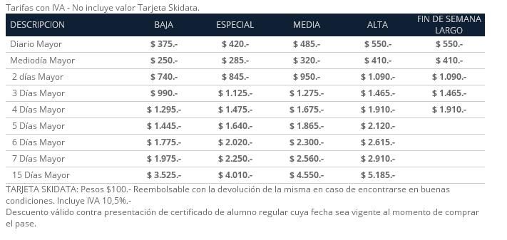 Este es el tarifario de pases para medios de elevación para la temporada 2015. Hay que tener en cuenta que además de los pases standard, hay dos tipos de pases especiales: