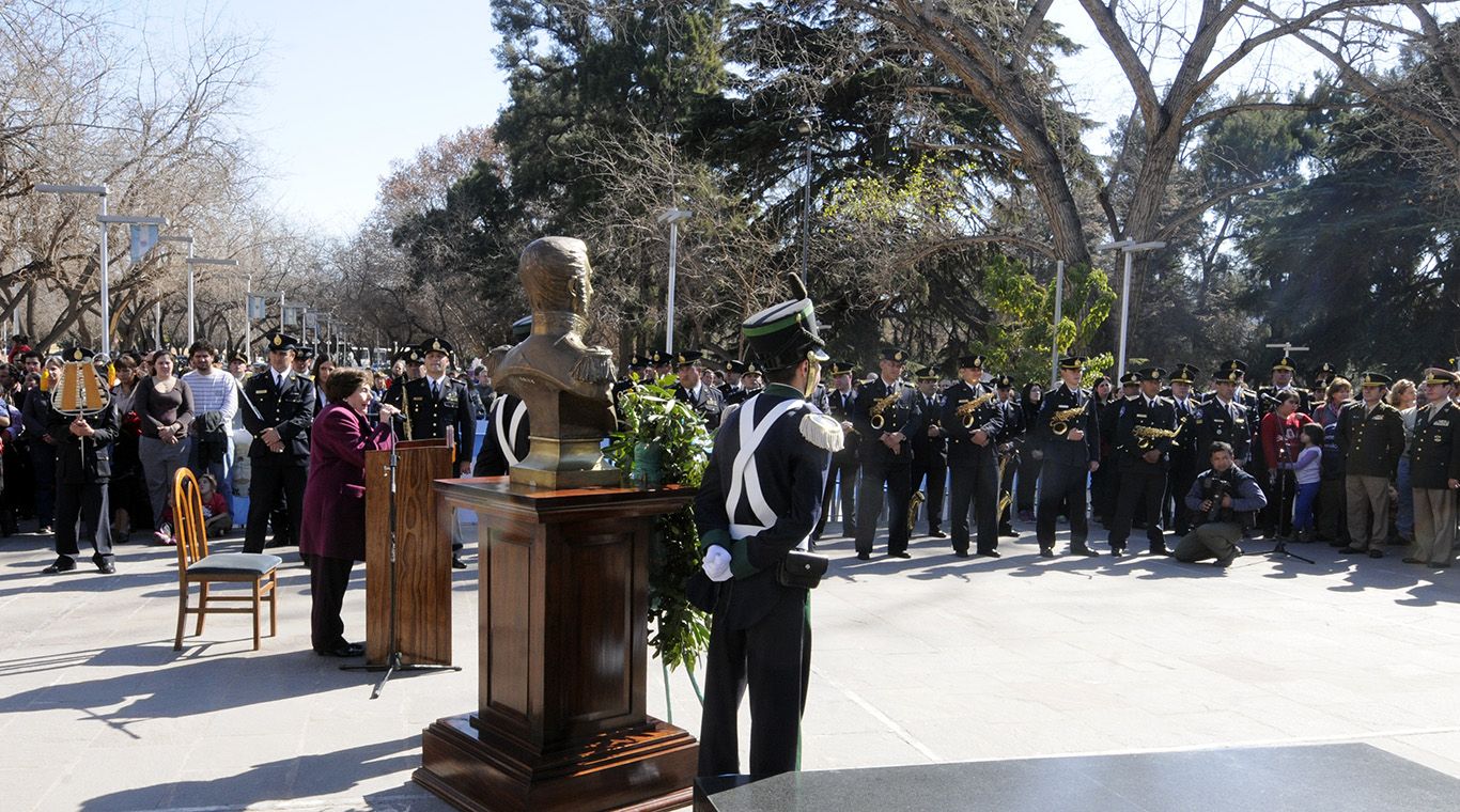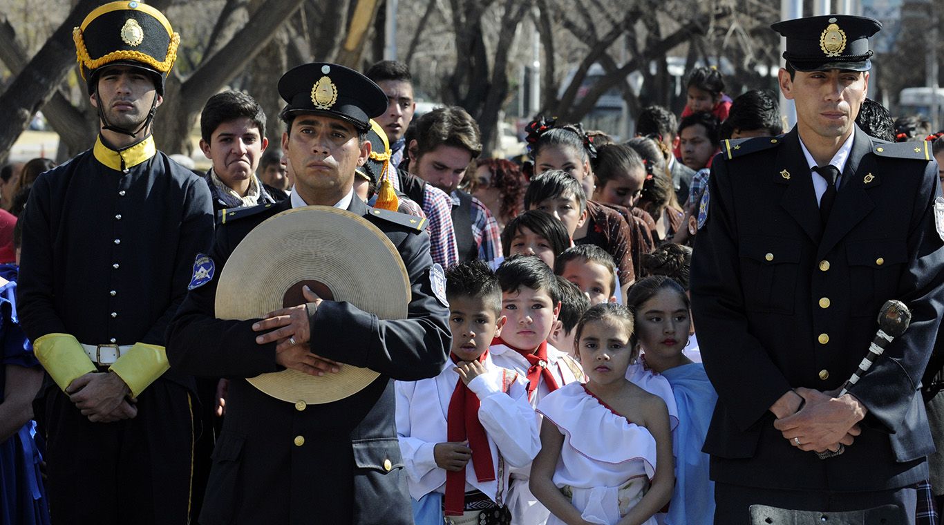 Los Niños Cantores, la banda de la Policía de Mendoza y ballets se lucieron en el Memorial de la Bandera para conmemorar un nuevo aniversario de la muerte del prócer.