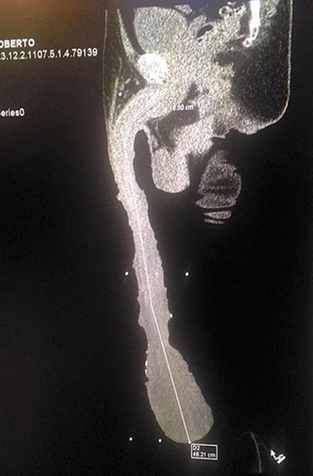 "Mire hasta dónde me llega, debajo de las rodillas. No puedo hacer nada, no puedo trabajar, soy un discapacitado". Con este argumento, el mexicano Roberto Esquivel Cabrera sostiene que no puede conseguir trabajo por tener un miembro masculino de 48,2 centímetros de largo.