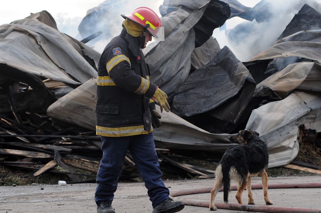 Los bomberos vieron la escena y acudieron en su ayuda. Chamuscado, se transformó en la única buena noticia de una jornada de furia que dejó destrucción y muchas pérdidas materiales alrededor del galpón en el que se desató el incendio.