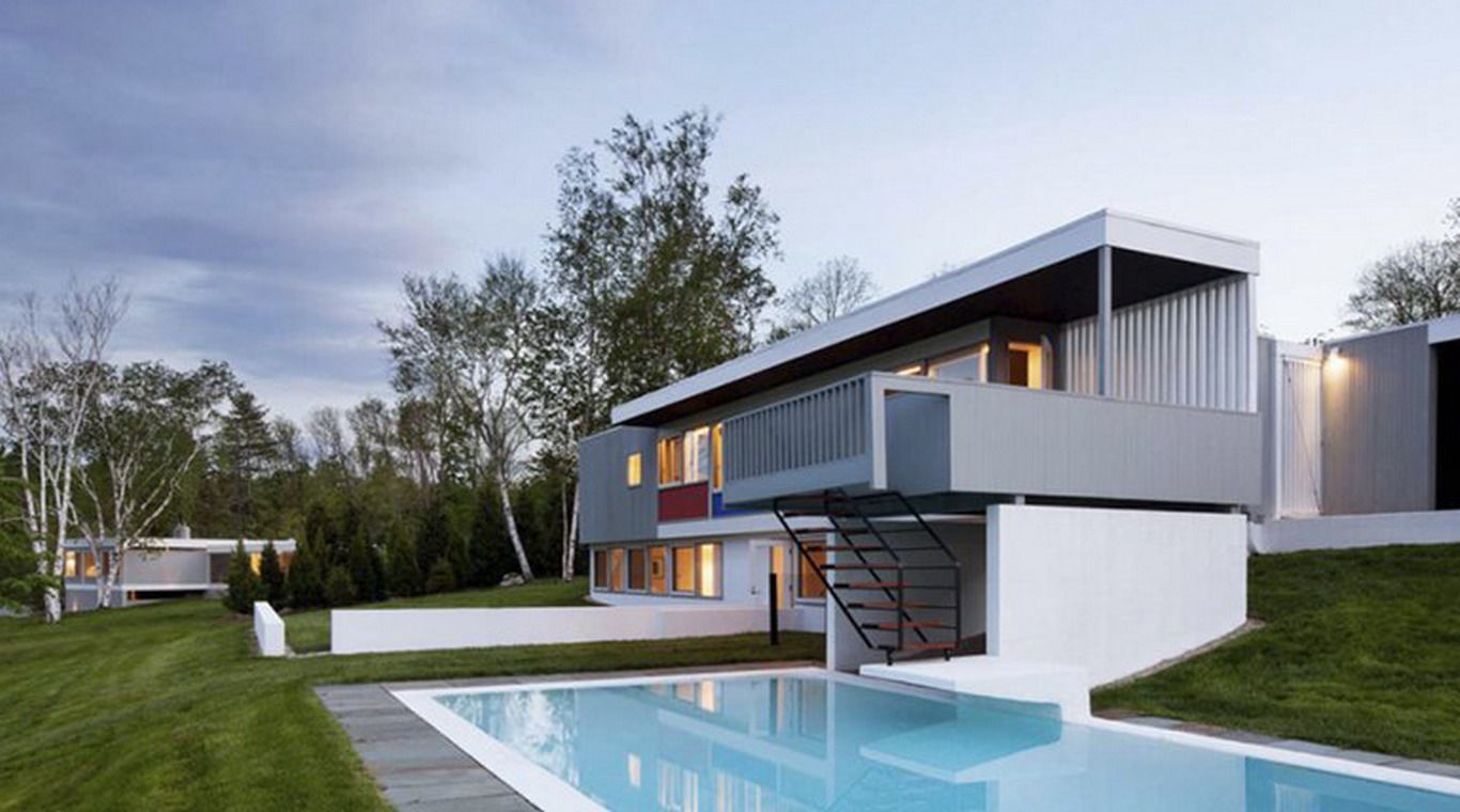 Esta propiedad, ubicada en Connecticut, Estados Unidos, combina vidrio, acero y concreto y tiene 9 habitaciones. Representa un contraste al tradicional estilo arquitectónico colonial que reinaba cuando fue construido. Cuenta con un mural de Alexander Calder y una plataforma de buceo. Vale USD 2.4 millones.